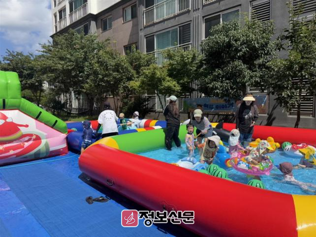 물놀이는 오전과 오후 두 차례에 걸쳐 진행됐다. 오전에는 인근 어린이집 3개소의 원아들을 초청해 또래 간 물놀이 활동을 운영했고, 오후에는 아파트 단지 내 영유아에게 공간을 개방했다.