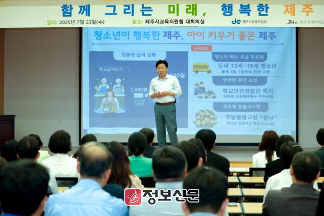 오영훈 지사는 강연에서 도와 교육청의 협력에 기반한 주요 성과로 ▲교육발전특구 시범사업 선도지역 지정 ▲급식단가 40% 인상 합의 ▲청소년 버스요금 무료화 ▲학교안전경찰관제 ▲돌봄시스템 확대 등을 소개했다.