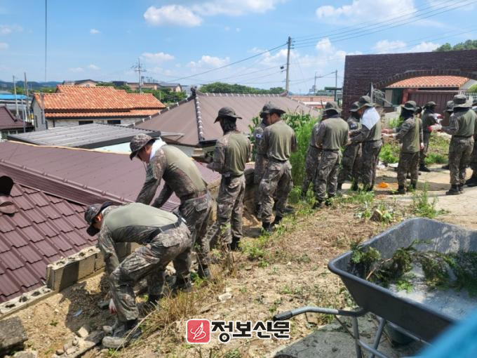 대민지원은 지난 17일부터 19일까지 이어진 집중호우로 피해를 입은 함평읍 기산길 129-3 일원에서 진행됐으며, 제8332부대 3대대 병력 40명과 예비군 지역대 11명 등 총 51명이 투입돼 붕괴된 담장 복구 작업을 펼쳤다.