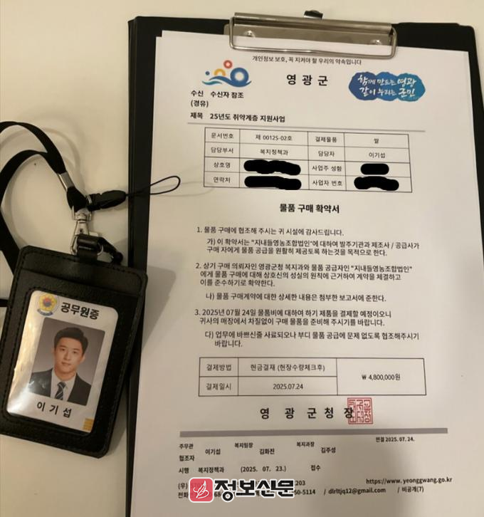![]() 영광군, 공무원 사칭 ‘허위 공문서’ 주의 당부 |