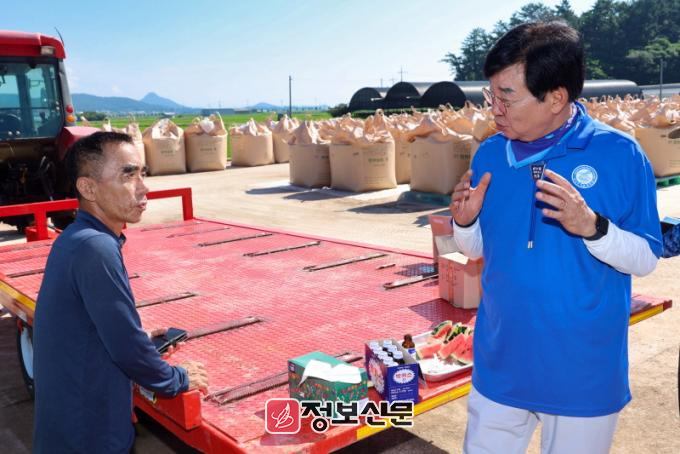 김성 장흥군수는 23일 관내 우리 밀 수매 현장을 방문하여 밀 수매농가를 격려하고 애로 사항을 청취했다.