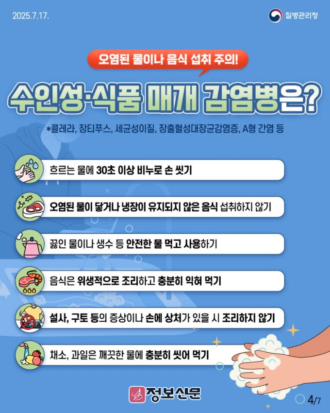 호우 이후에는 모기와 같은 감염 매개체의 서식 환경이 변화하고, 위생 상태가 불량하기 쉬워 감염병 발생 위험도가 높아진다. 특히, 모기 유충은 폐타이어, 인공 용기, 화분 받침, 쓰레기통, 배수구 고인 물 등 다양한 물웅덩이에 서식, 비가 그친 후에는 주변 고인 물 제거와 풀·잡초 정리 등 환경 정비가 중요하다.