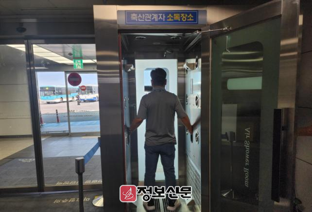 병원체 유입 위험성이 높은 축산차량과 축산관계자에 대해서는 동물검역센터 거점소독장에서 신고·소독을 의무화하는 등 촘촘한 차단방역을 실시하고 있다. 변화하는 환경에 맞춰 올해 6월 11부두에 차량소독시설을 신규 설치하는 등 맞춤식 차단방역 시스템 구축에 최선을 다하고 있다.