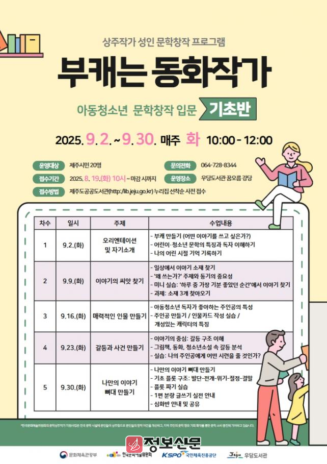 참여를 희망하는 제주시민은 8월 19일 오전 10시부터 제주특별자치도 공공도서관 누리집(http://lib.jeju.go.kr) 행사/프로그램의 도서관 프로그램 신청란에서 선착순으로 신청하면 된다.