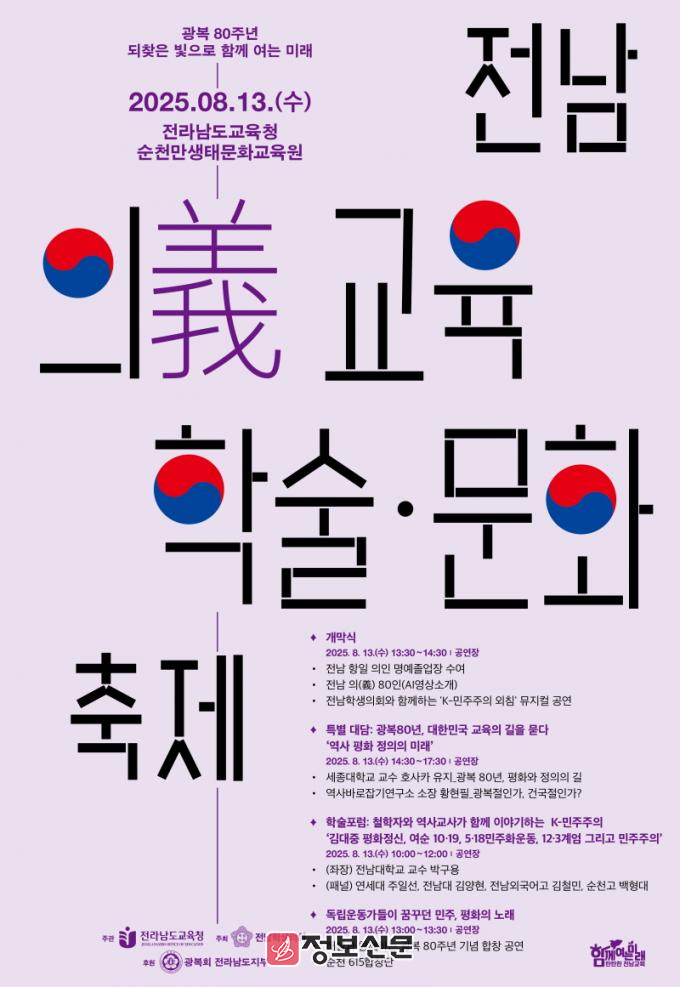 ![]() 전라남도교육청, 광복 80주년 기념 ‘전남 義 교육 축제 개최 |