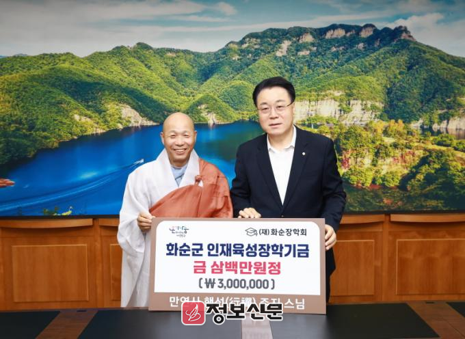 ![]() 만연사 행선(行禪) 주지 스님, 화순장학회 지역 인재 양성을 위한 장학금 기탁 |