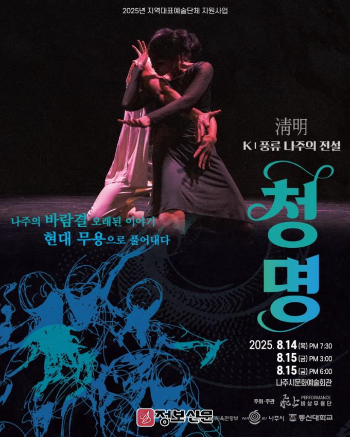 나주시(시장 윤병태)는 12일 문화체육관광부가 주관한 ‘2025년 지역대표 예술단체 육성지원사업’에 선정된 동신대학교 비상무용단이 창작공연 ‘K-풍류 나주의 전설 : 청명(淸明)’을 오는 14~15일 이틀간 나주문화예술회관에서 3회 공연한다고 밝혔다.