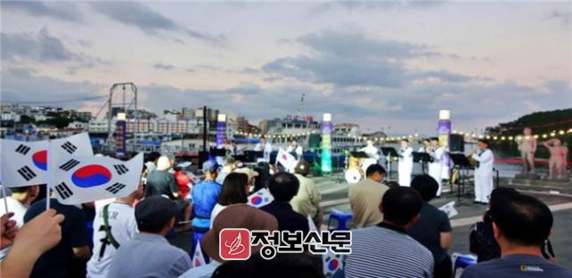 해군 군악대는 다양한 레퍼토리의 힘찬 연주와 함께, 특별히 ‘홀로 아리랑’을 연주해 광복의 의미와 평화의 메시지를 더욱 깊이 전했다.