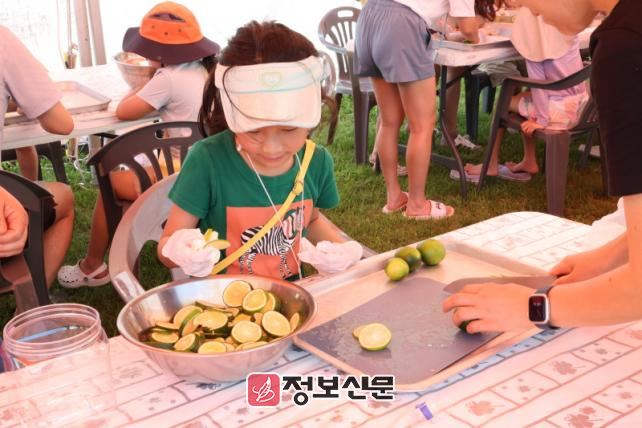 완숙귤보다 비타민C와 항산화 물질이 최대 32배 많이 함유돼 여름철 건강식품으로 주목받는 풋귤을 활용한 ‘풋귤청 담기 체험’에는 300명이 넘는 참가자가 몰리며 큰 인기를 끌었다.
