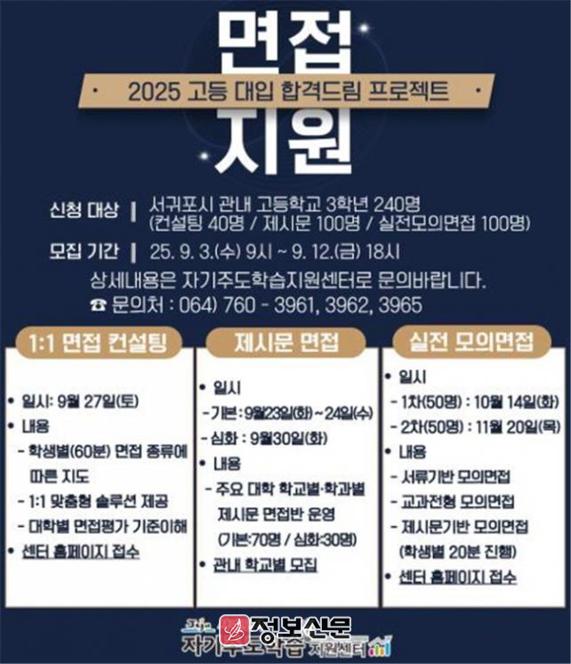 ![]() 서귀포시, 고등대입 합격드림 프로젝트 ‘고3 면접 지원 프로그램’ 운영 |
