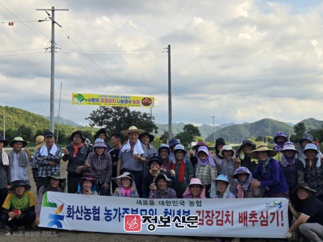 화산농협 농가주부모임 양순희 회장은 “우리 손으로 키운 농작물들을 11월에 김장하고, 어려운 이웃들을 위하여 나눠드릴 수 있다는 생각에 너무 더웠지만, 즐거운 마음으로 배추를 심었다”고 말했다.