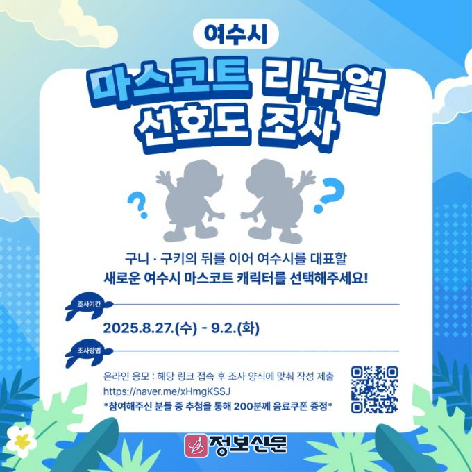 ![]() ▲ ‘여수시 마스코트 리뉴얼 선호도 조사’ 홍보물 |