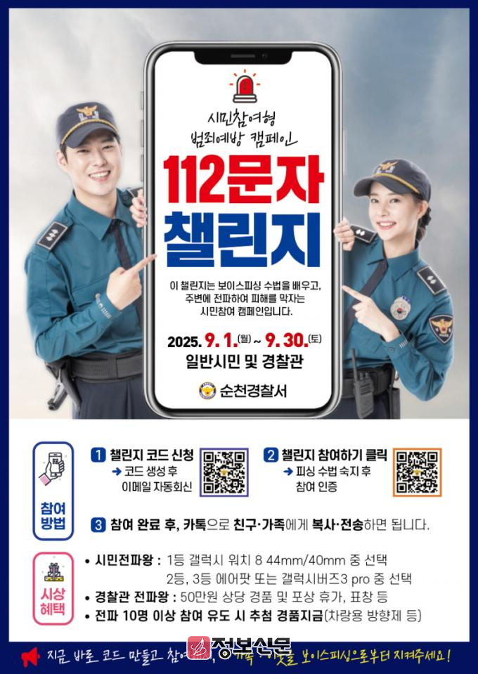 ![]() 순천경찰서, 전국 최초 ‘112 문자 챌린지’로 보이스피싱 예방 선도 |