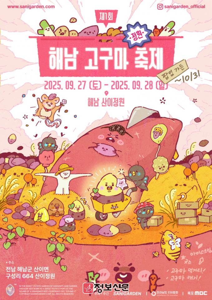 산이정원 관계자는 “해남의 명품 특산물이 고구마임에도 불구하고, 대표 지역 축제가 없어 늘 아쉬움이 있었다”며 “이번 고구마 축제는 단순한 행사를 넘어 환경과 지역사회에 기여하는 ESG 축제이자, 국내 최초 고구마 정원에서의 새로운 전통으로 자리매김할 것”이라고 밝혔다.
