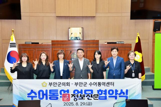 이번 협약은 부안군의회 본회의 생방송 송출 시 수어통역 영상 서비스를 제공하기 위한 것으로 청각·언어장애인의 알 권리 보장과 의정활동 참여 기회 확대를 위해 추진됐다.