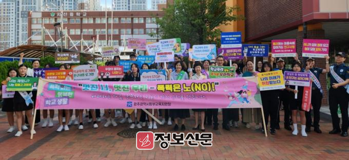 이번 캠페인은 학교폭력에 대한 경각심을 높이고 안전한 학교 문화를 확산시키기 위해 북부경찰, 북구, (사)패트롤맘 광주지부 등 지자체·유관기관과 협력해 추진됐다.