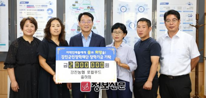 강진농협 로컬푸드 출하회 신선영 부회장을 비롯해 조해자 간사, 김정희 총무, 정경일 점장, 김승욱 팀장이 참석해 200만 원의 장학금을 기탁하며 지역 인재 양성을 위한 애정을 보였다.