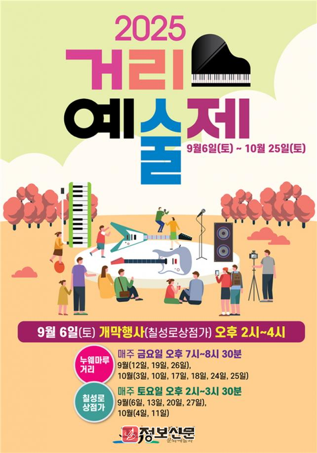 채경원 문화예술과장은 “시민들이 일상 속에서 음악과 예술을 가까이 누릴 수 있도록 다채로운 거리예술제를 준비했다”며, “많은 시민이 공연장을 찾아 활기찬 시간을 보내시길 바란다”고 말했다.