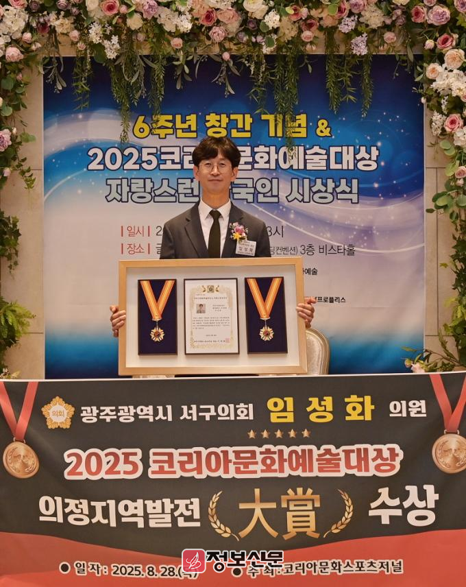 ![]() 광주 서구의회 임성화 의원, 2025코리아문화예술대상 의정지역발전 대상 수상 |