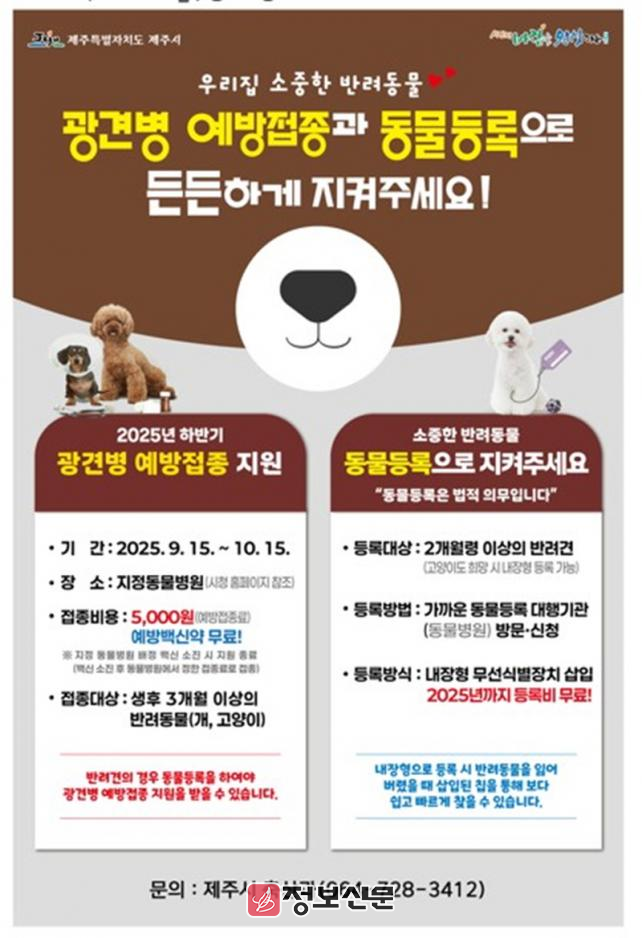 ![]() 제주시, 하반기 광견병 예방접종 지원사업 추진 |