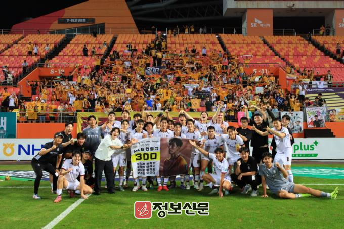 이정효 감독은 72분 승부수를 던졌다. 오후성, 주세종을 빼고 문민서, 프리드욘슨을 투입했다. 비가 많이 내린 그라운드 상황을 고려해 키가 큰 박인혁, 프리드욘슨을 투톱으로 배치해 직선적인 공격을 시도했다. 78분엔 하승운 대신 안영규를 넣어 수비진의 높이까지 보강했다.