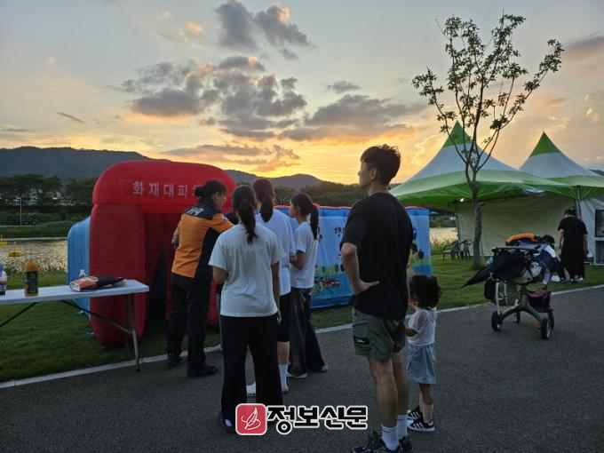 특히, 화재대피 에어바운스는 화재 시 발생하는 연기로 시야 확보가 어려운 상황을 실제처럼 재현하는 장비로, 참가자들은 피난안내도·유도등·손의 감각에 의지해 안전하게 탈출하는 과정을 체험하며 소방안전의 중요성을 체감했다.