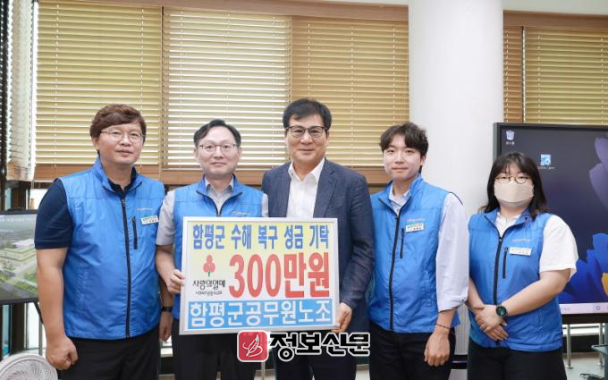 함평군은 1일 “함평군공무원노조가 지난달 29일 집중호우 피해지역의 조속한 복구와 군민 생활 안정을 위해 성금 300만 원을 기탁했다”고 밝혔다.