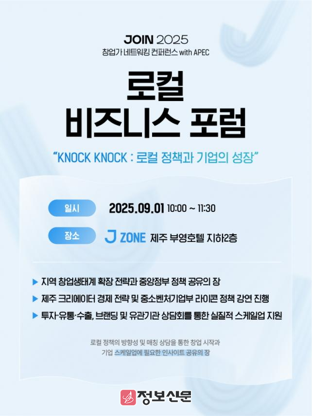 ![]() 제주창조경제혁신센터, JOIN 2025 창업생태계 네트워크 및 로컬 비즈니스 포럼 개최 |