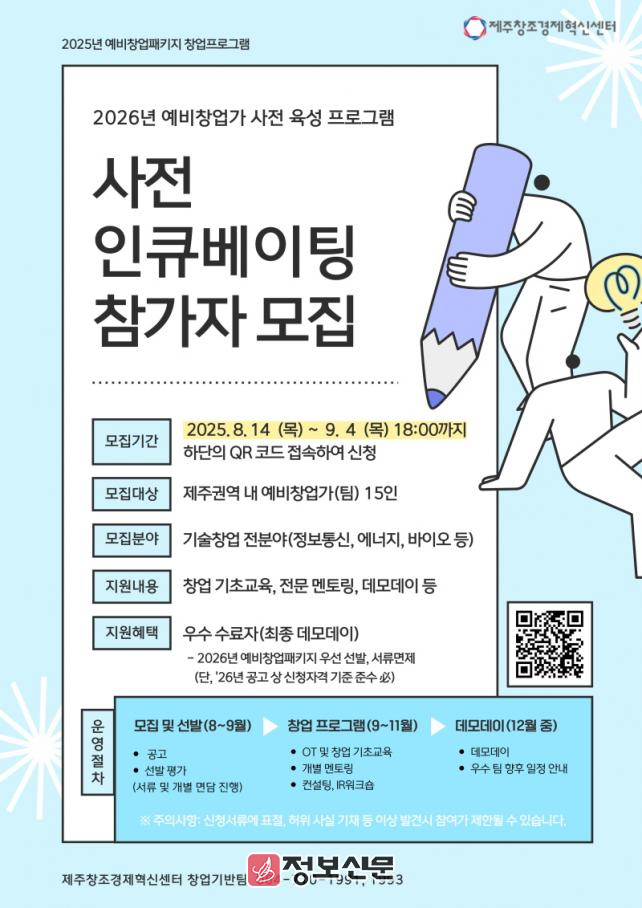 ![]() 제주창조경제혁신센터, ‘사전 인큐베이팅’ 참가자 모집 |