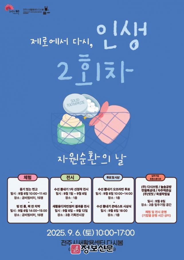 이은주 전주시새활용센터장은 “이번 행사가 시민들이 일상에서 자원순환의 필요성을 직접 느끼고, 지역 새활용 기업의 창작활동을 널리 알리는 계기가 되길 바란다”며 “앞으로도 시민 참여형 자원순환 문화 확산을 위한 다양한 프로그램을 지속 운영하겠다”고 말했다.