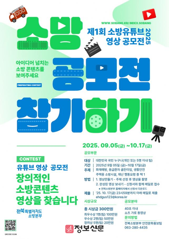![]() 전북특별자치도소방본부, 제1회 도민안전 소방유튜브 공모전’개최 |
