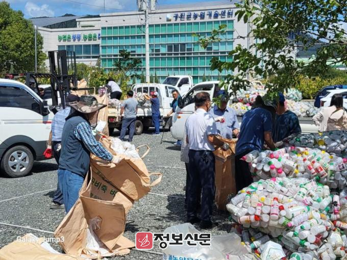 농촌지도자회 강진군연합회원 40여 명은 직접 나서 지난 2주 동안 읍면을 돌며 농약 빈병을 수집하고 빈병 수거 과정에서 농약 빈병의 재활용 가능성과 올바른 처리 방법에 대해 설명하며 농가 주민들의 참여를 독려했다.