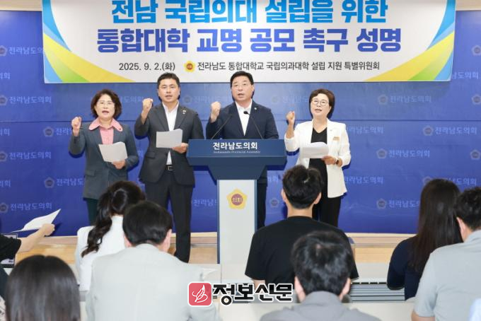 ![]() 전라남도의회, 전남 의과대학 설립 위한 통합대학 교명 공모 촉구 성명 발표 |