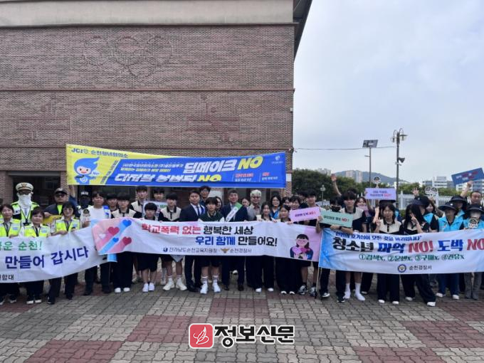 ![]() 순천경찰서, 순천교육지원청과 등교맞이 학교폭력 예방 캠페인 전개 |
