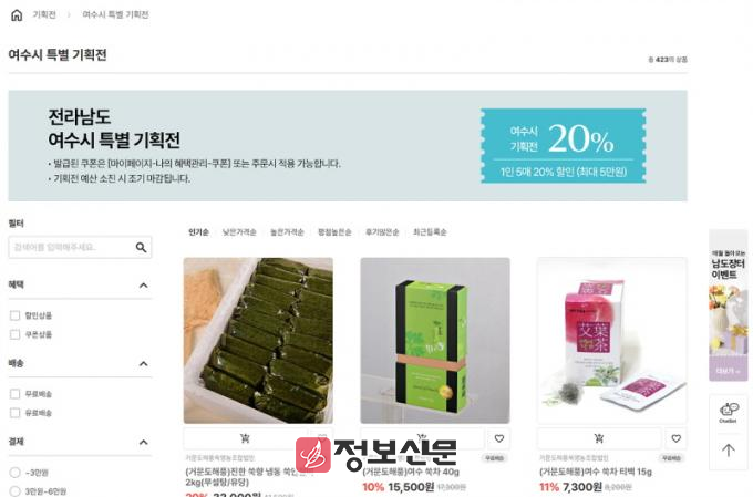 소비자는 남도장터 누리집(https://www.jnmall.kr) 내 ‘여수시 특별 기획전 전용관’을 통해 다양한 상품을 편리하게 둘러보고 할인 혜택을 누릴 수 있다.