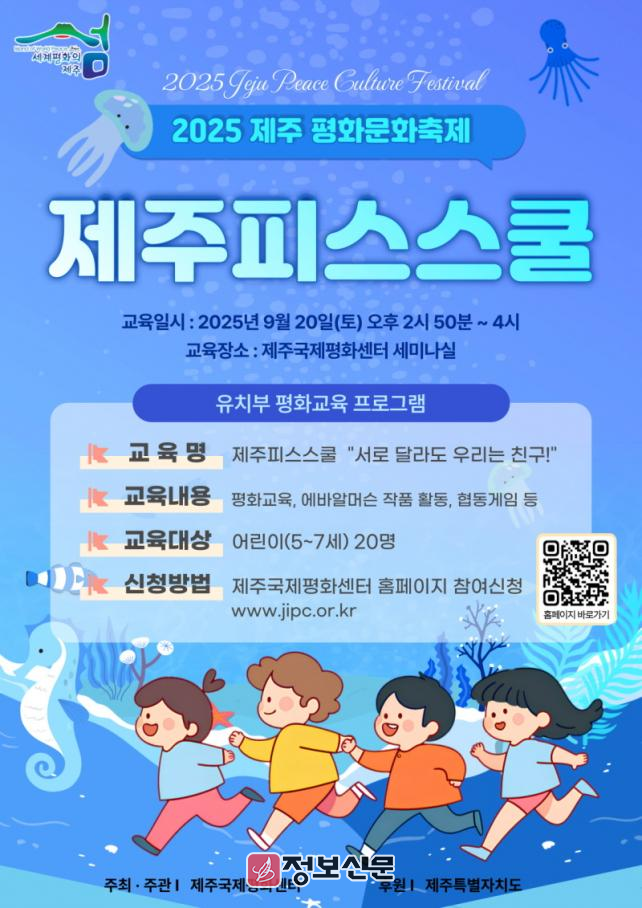 ![]() 제주국제평화센터, 어린이 웃음이 만드는 평화의 씨앗, 제주피스스쿨 참가자 모집 |