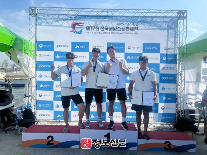 ![]() ▲ 지난 8월 30일부터 9월 2일까지 경기도 시흥시에서 열린 ‘제17회 전국해양스포츠제전’ 요트경기에서 여수시청 직장운동경기부 요트팀이 출전한 전 종목에서 메달을 획득하는 쾌거를 이뤘다(왼쪽부터 강형중·이석현·김종승·성시유 선수). |