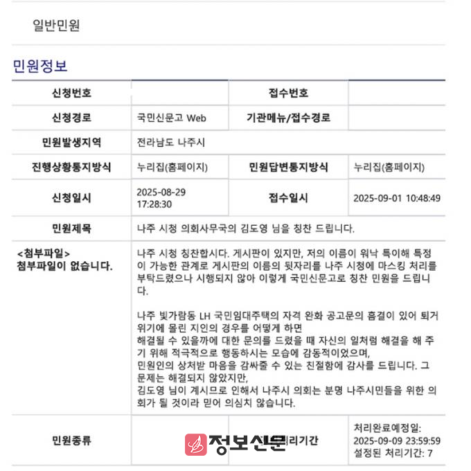 ![]() 나주시의회, 감동을 주는 민원 처리 |