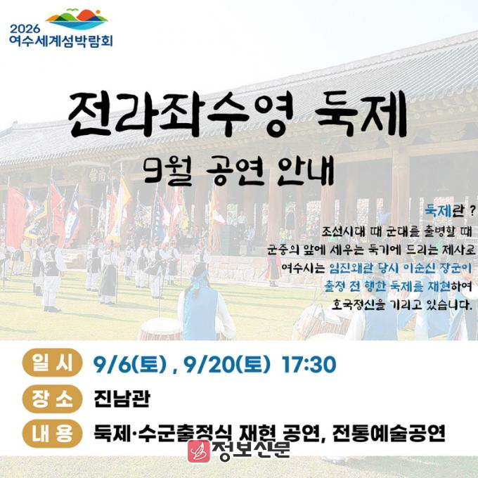![]() 여수시, ‘전라좌수영 둑제’ 하반기 공연 재개 |