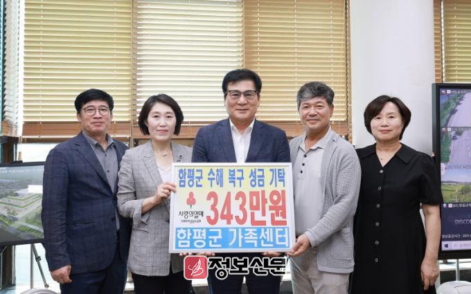 함평군은 5일 “함평군가족센터가 지난 3일 수해 피해 주민을 돕기 위해 성금 342만5천 원을 기탁했다”고 밝혔다.