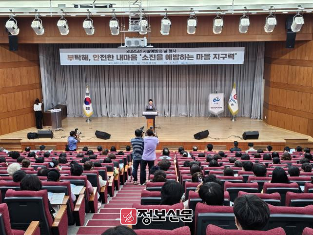 ‘부탁해, 안전한 내 마음’이라는 주제로 열린 이번 행사는 자살예방의 날 유공군민 감사패 수여와 윤홍균 작가의 “소진을 예방하는 마음 지구력” 강연이 진행되었다. 감사패는 번개탄판매보관함 관리릍 통해 자살수단차단에 기여한 청정에브리마트와, 군부대 고위험군 조기발견 및 연계를 통해 협력체계 구축한 8098-1대대 오재혁 대위에게 수여되었다.