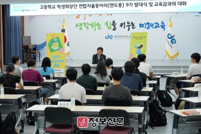 ![]() 김광수 제주특별자치도교육감, 제주 고교 학생회장단 연합자율동아리 맨도롱 제9기 발대식 참석 |