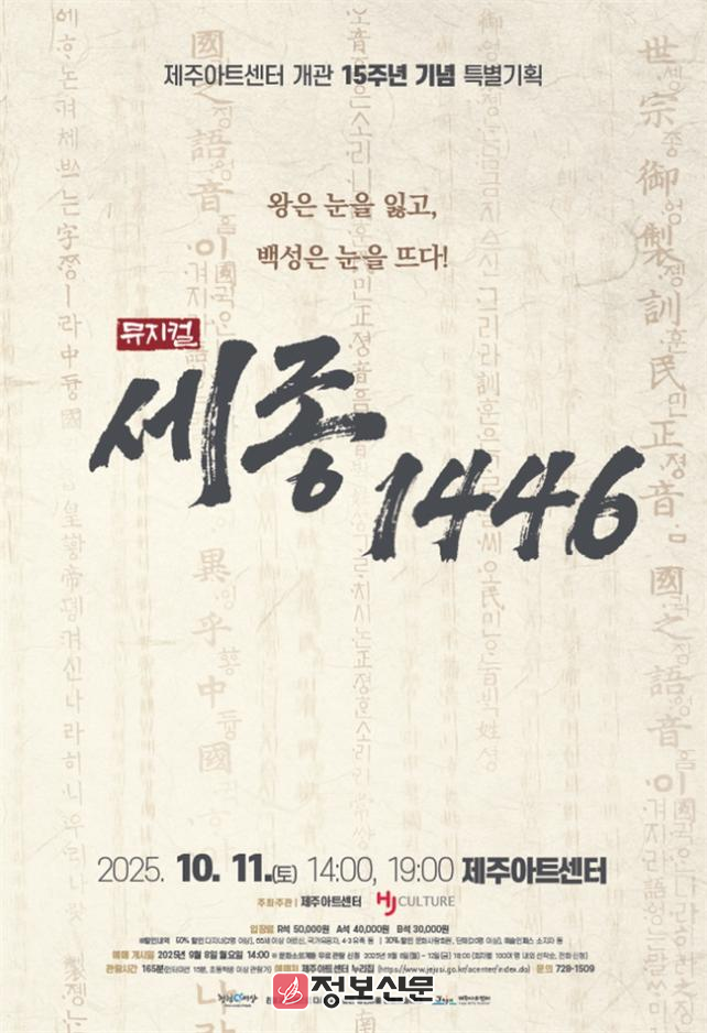 ![]() 제주아트센터, 개관 15주년 기념 뮤지컬 세종, 1446 공연 개최 |
