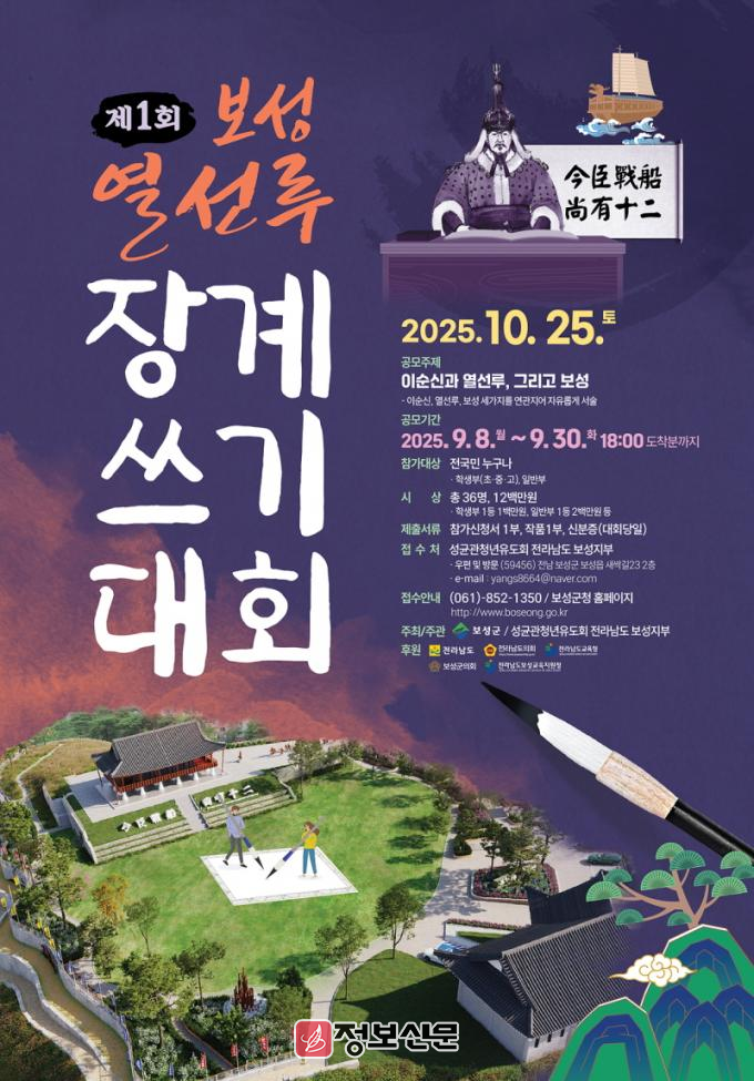 ![]() 보성군, 제1회 보성열선루 장계쓰기 대회 참가자 모집 |