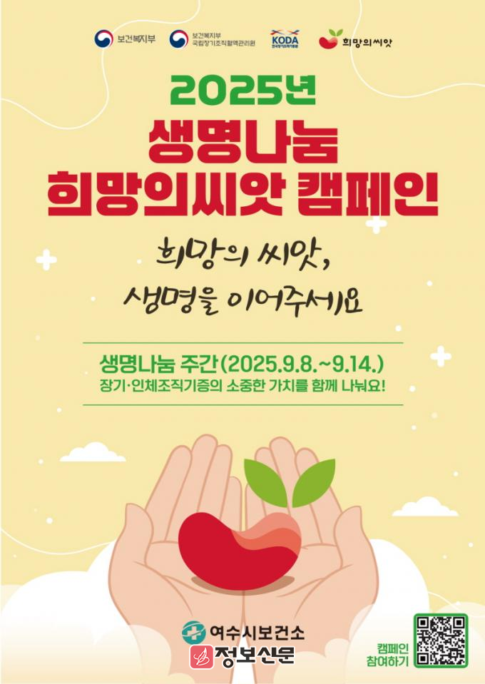 ![]() 여수시, ‘생명나눔 주간’ 맞아 ‘희망의 씨앗’ 캠페인 실시 |