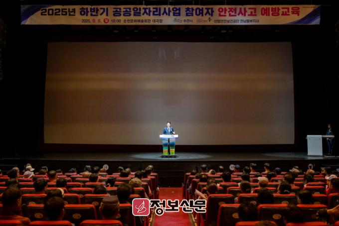 시는 공공일자리사업 참여자의 안전한 근무환경 조성을 위해 8일 순천문화예술회관 대극장에서 안전사고 예방교육도 실시했다. 이번 교육에는 공공일자리사업 참여자 및 사업 담당자 등 260명이 참석했다.