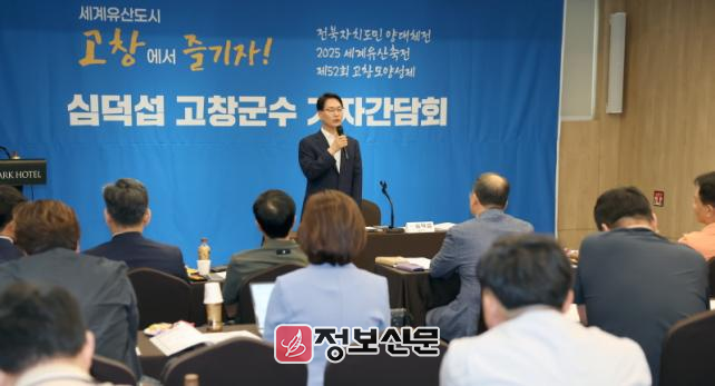 전날(8일) 오후 심덕섭 고창군수는 석정웰파트호텔에서 ‘세계유산도시 고창에서 즐기자’를 주제로 기자간담회를 열었다.