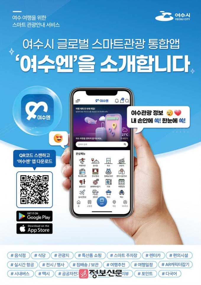 ![]() 여수시, 관광의 길잡이 스마트 앱 ‘여수엔’ 운영 |