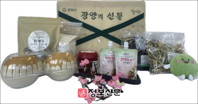 선물세트는 광양의 대표 농특산물인 햅쌀, 배, 전통 고추장, 건고사리, 건토란대, 김부각, 매실 워터젤리 7가지 품목으로 구성됐으며, 가격은 배송비를 포함해 5만 원이다.