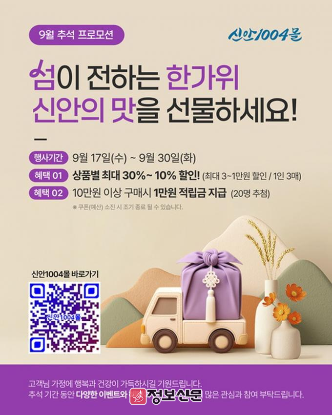 ![]() 신안군, 추석맞이 ‘신안1004몰’ 특별 기획전 개최 |